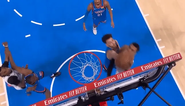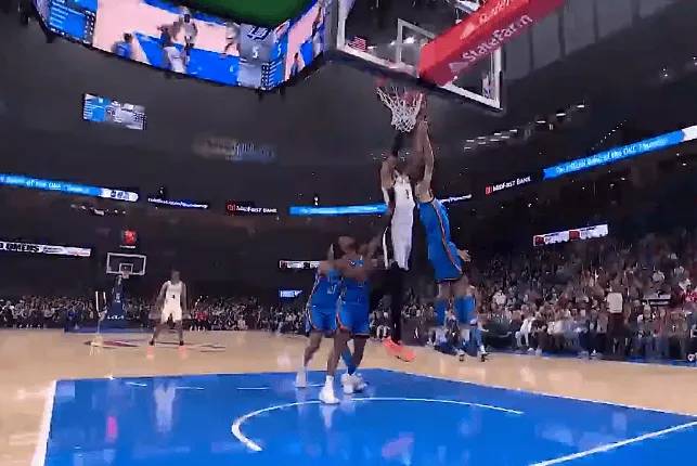 第一节比赛中,文班亚马左手背身强攻霍姆格伦,强硬推至篮下直接左手隔扣。